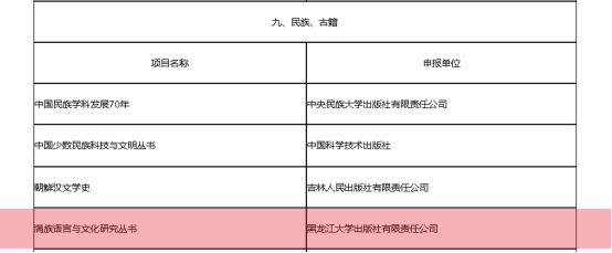 近日,2020年度国家出版基金资助项目评审结果正式公布,我社与社会科学文献出版社联合申报的《满族语言与文化研究丛书》成功入选。