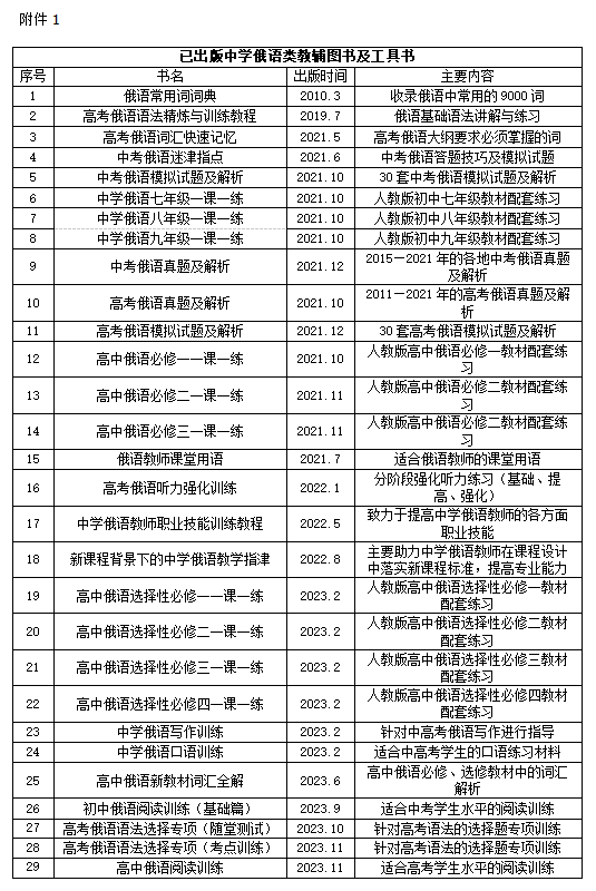 附件1:我社已出版中学俄语类教辅图书及工具书