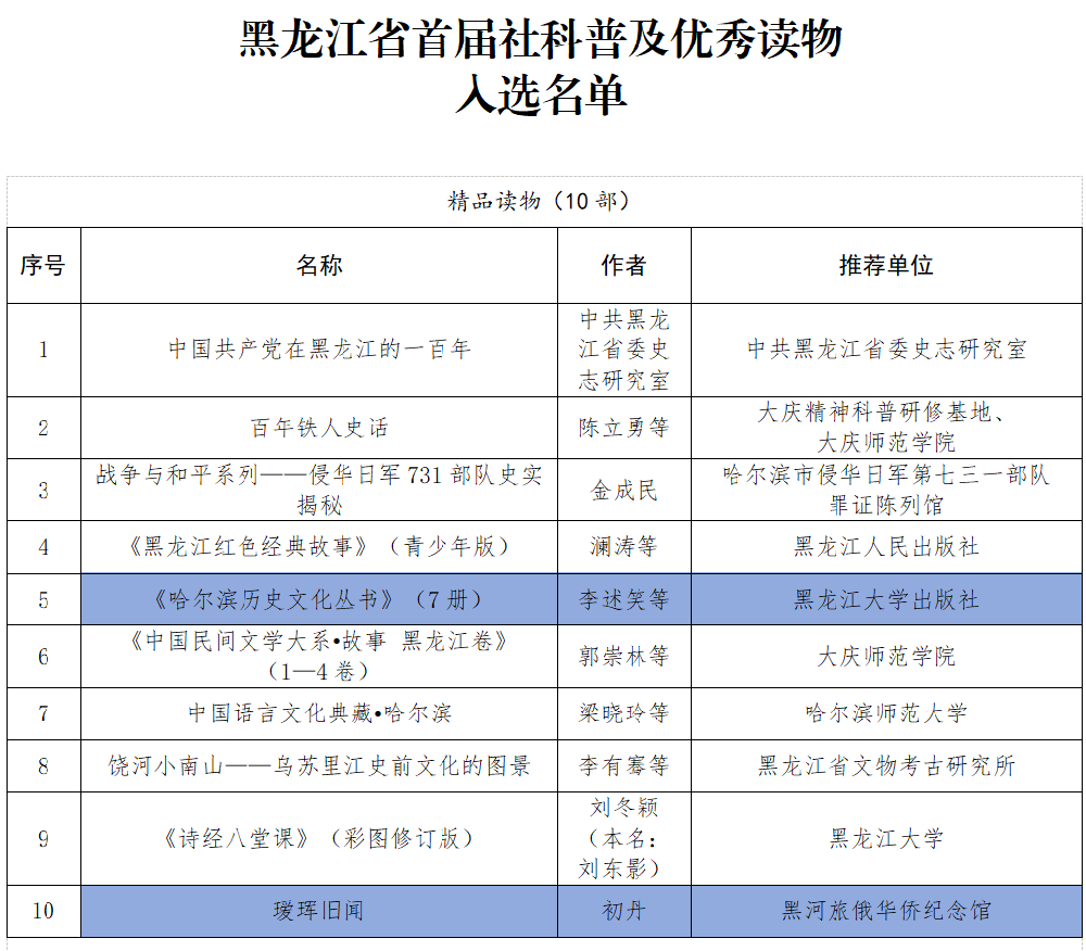 我社两部作品入选黑龙江省首届社会科学普及优秀读物
